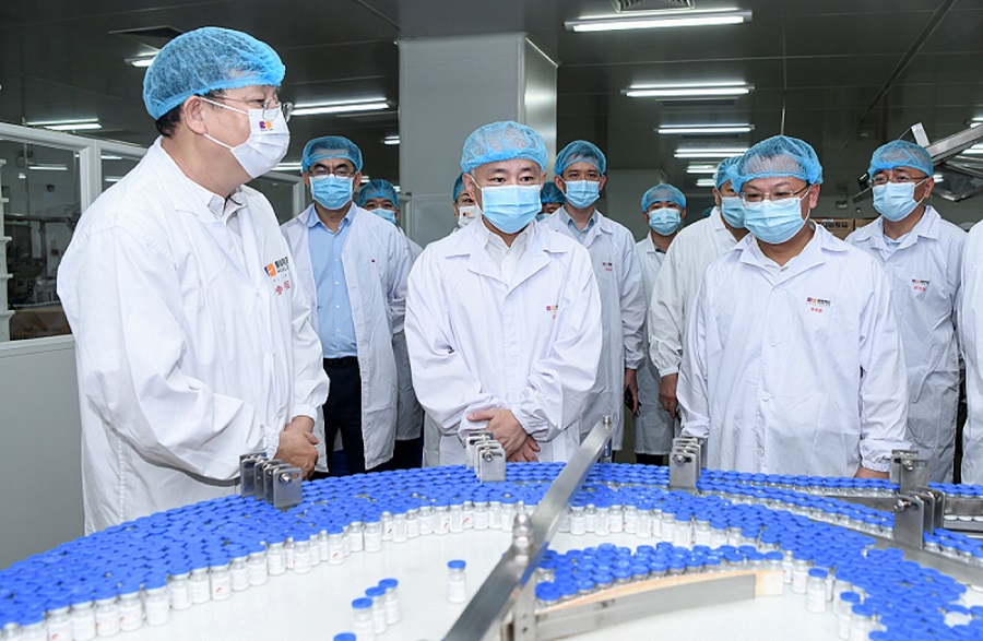95日上午,海口市委副書記、市長丁暉帶領市政府相關部門主要負責人來到皇隆制藥調研。