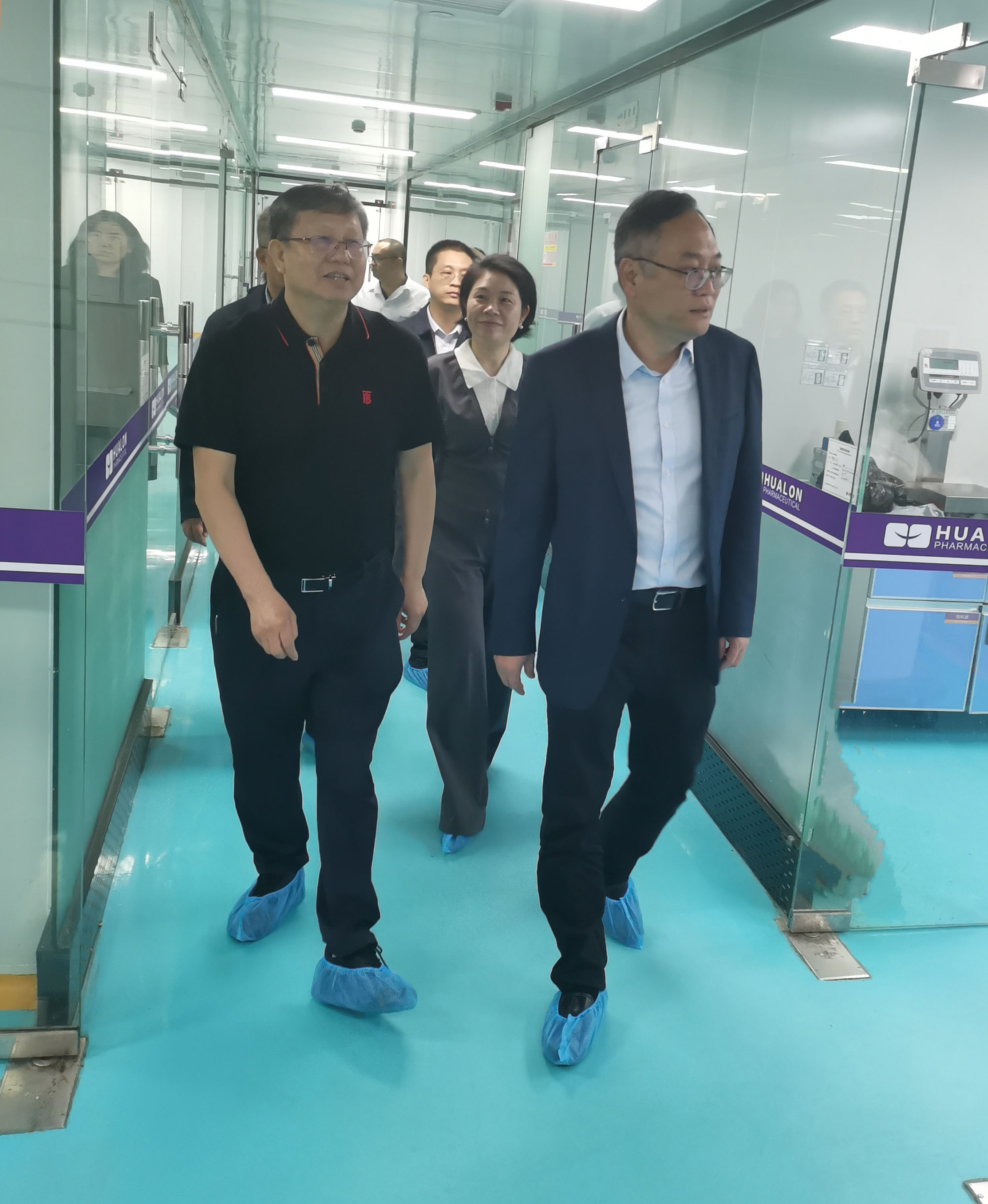 丁飛主席一行參觀了公司展廳、企業技術研發中心,詳細了解了企業的發展歷程、產品研發創新情況。參觀過程中,丁飛主席高度肯定和贊揚了皇隆制藥深植海南醫藥行業的發展歷程。